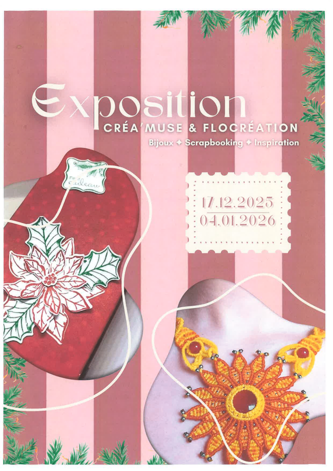 Exposition Créa'muse & Flocréation Exposition Créa'muse & Flocréation Du mercredi 17 décembre 2025 au dimanche 04 janvier 2026 Ical Condition d'accès Renseignements : bibliotheque@saintgervais-vendee.fr ou 02 51 93 66 75 Public Tout public Lieu SAINT GERVAIS Lire la suite