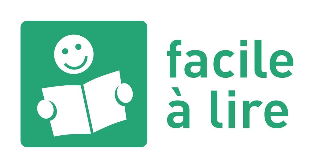 Le Facile à lire est une offre de lecture développée à destination du public adulte qui en est éloigné, comme présenté ci-dessous. Il existe un logo national (à gauche ci-dessous).